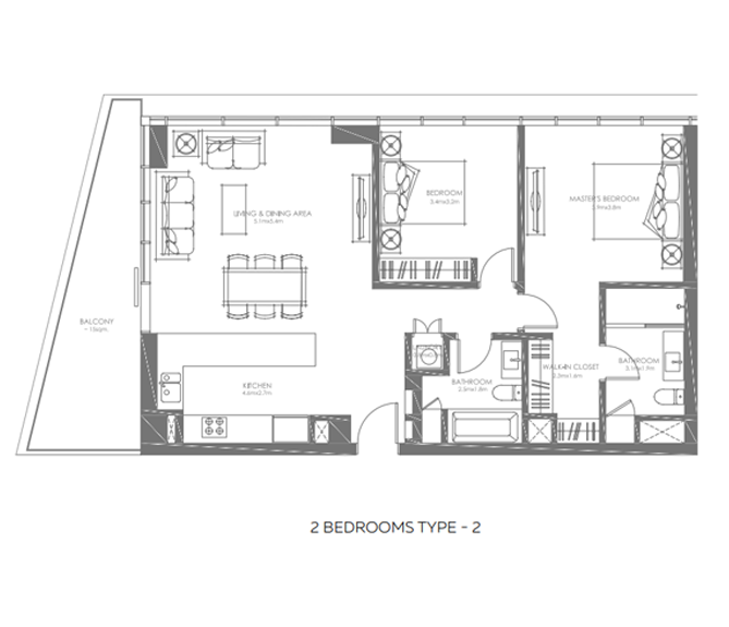 2 Bedroom 1,098 - 1,294 Family-friendly configurations with dual balconies